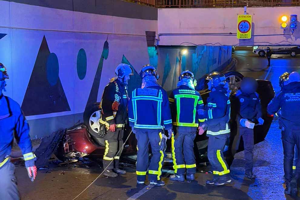 Insólita precipitación de un coche en el Puente de San Nicasio desde la calle Río Manzanares de Leganés
