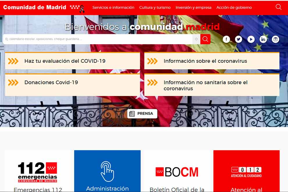 El vicepresidente de la Comunidad, ha avanzado la renovación de la web de la Comunidad de Madrid (www.comunidad.madrid). El nuevo diseño tiene como finalidad hacerla aún más accesible para el ciudadano y dispone de dos espacios diferenciados y únicos en los que queda agrupada la información de utilidad en relación con la crisis ocasionada por la expansión del coronavirus (COVID-19), en materia sanitaria y no sanitaria.