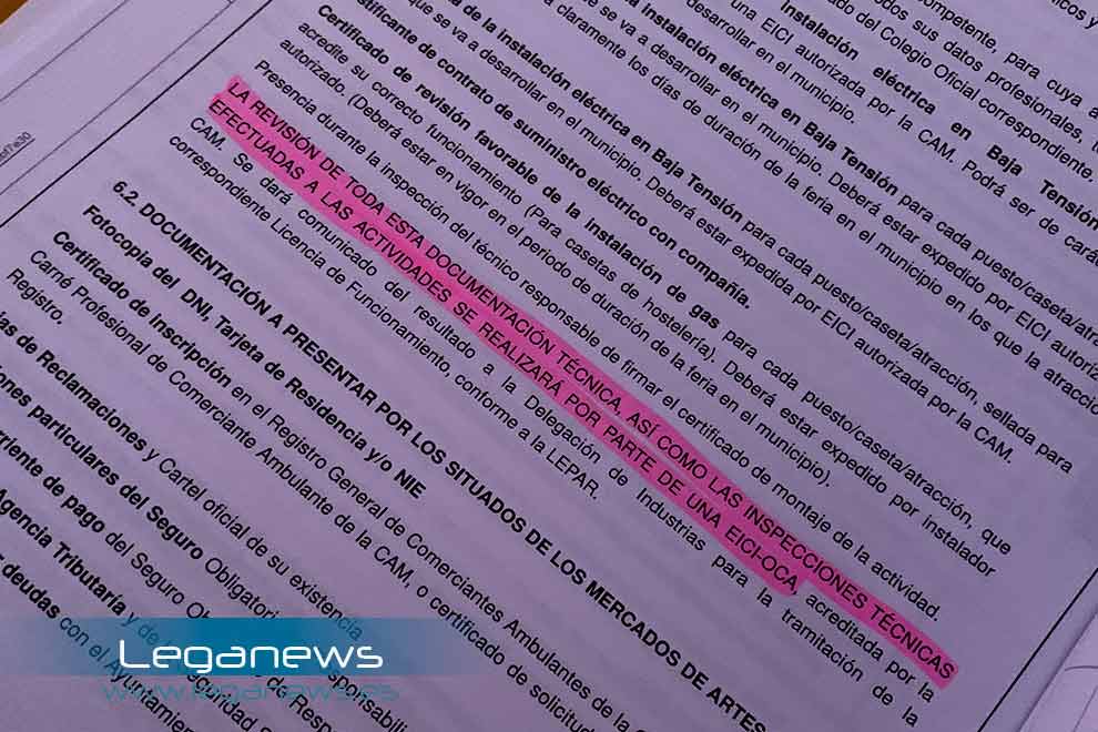 En el mismo, como puede comprobarse en una de las fotos, se señala de forma literal que “la revisión de toda esta documentación técnica, así como las inspecciones técnicas efectuadas a las actividades se realizará por parte de una EICI-OCA, acreditada por la CAM. Se dará comunicado a del resultado a la Delegación de Industrias para la tramitación de la correspondiente licencia de funcionamiento, conforme a la LEPAR”.