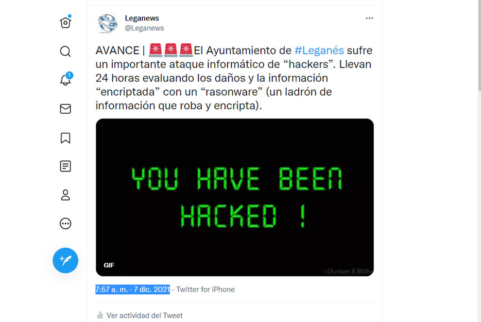 El modelo de ataque informático sufrido por el Ayuntamiento de Leganés , según la información contrastada por este periódico, es una fórmula de extorsión utilizada últimamente por delincuentes informáticos. El procedimiento, uno de los virus informáticos más peligrosos, consiste en encriptar la información y chantajear al sistema pirateado para devolvérselos.