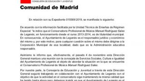 ACTUALIDAD • AYUNTAMIENTO • COMUNIDAD • SOCIEDAD La Comunidad manifiesta que el Conservatorio de Leganés es de titularidad municipal 06/12/2019