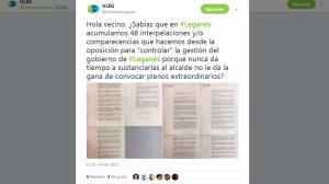 AYUNTAMIENTO • MÁS MADRID - LEGANEMOS • POLITICA • PP • ULEG ULEG fuerza de nuevo un Pleno de control al gobierno de Leganés 09/11/2017