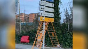 ACTUALIDAD • AYUNTAMIENTO ¡Otra chapuza! Vox denuncia como una señal está sujeta por vallas con piedras en las obras del Polígono de Butarque 10/12/2021