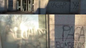ACTUALIDAD • AYUNTAMIENTO Pintadas en el ayuntamiento de Leganés reclamando pagos pendientes a los bomberos 05/01/2021