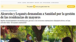ACTUALIDAD • AYUNTAMIENTO El Ayto. de Leganés confirma con un comunicado la noticia publicada por El País el domingo sobre la denuncia por la ‘inactividad de la Comunidad’ en las residencias de mayores 03/11/2020