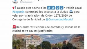 ACTUALIDAD • AYUNTAMIENTO El Ayto. de Leganés avisa de que Policía Local controlará los accesos a la ciudad desde las diez de la noche 02/10/2020