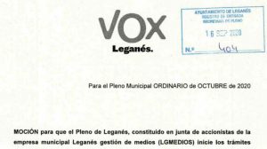 ACTUALIDAD • AYUNTAMIENTO VOX Leganés denuncia que el 16 de septiembre pidieron el cierre de una empresa pública que ahora quiere cerrar ‘de tapadillo’ el gobierno local 05/10/2020