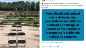 ACTUALIDAD • AYUNTAMIENTO • SALUD El Ayto. de Madrid suspende los conciertos del leganense Borja Niso y el de Fuenlabrada cierra la piscina y las actividades culturales 24/08/2020