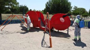 ACTUALIDAD • AYUNTAMIENTO • SALUD El Ayto. comienza la desinfección de los parques infantiles de Leganés tras su reapertura 23/06/2020