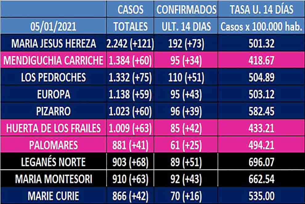 De mantenerse en la Comunidad de Madrid dicho rango, la ciudad sería prácticamente cerrada en todas sus zonas de salud salvo el área de Mendiguchía Carriche, Huerta de los Frailes y Palomares.