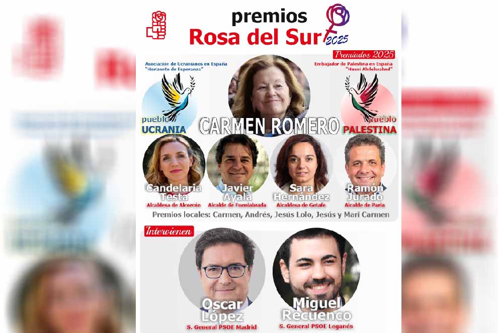 En el ámbito regional, serán distinguidos Candelaria Testa, Javier Ayala, Sara Hernández y Ramón Jurado, alcaldes y alcaldesas socialistas del Sur de Madrid que representan la mejor tradición municipalista del socialismo democrático: una política cercana, útil y transformadora, basada en la gestión eficaz y en la convicción de que las instituciones deben estar al servicio de la ciudadanía.