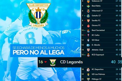 ACTUALIDAD • LEGA El CD Leganés certifica de forma matemática su salvación… #NoHayDosSinTres 29/04/2018