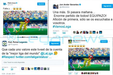 ACTUALIDAD • DEPORTES • LEGA Leganés entero clama contra las instituciones del fútbol por el gol con la mano de Bakambu 23/04/2017