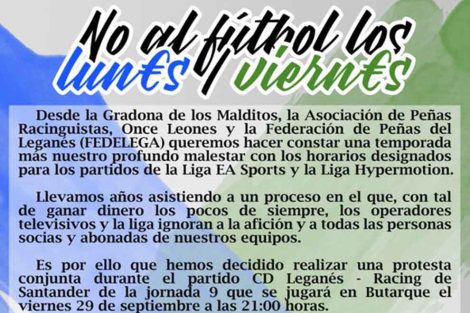 ACTUALIDAD • DEPORTES • LEGA Diferentes peñas unen fuerzas para decir “No al fútbol los lunes y viernes” 28/09/2023
