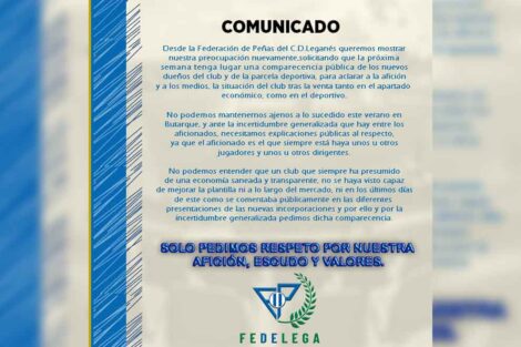 ACTUALIDAD • DEPORTES • FUTBOL • LEGA La Federación de Peñas del C.D. Leganés pide explicaciones a los nuevos dueños sobre el mercado de fichajes 05/09/2022