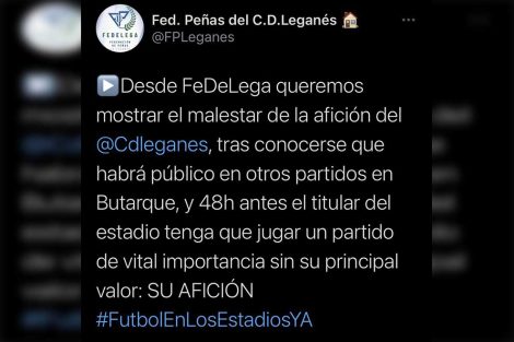 ACTUALIDAD • DEPORTES • FUTBOL • LEGA • LIGA • SOCIEDAD La Federación de Peñas del CD Leganés muestra su “malestar” ante el anuncio de que la Copa De La Reina se jugará con público 25/05/2021