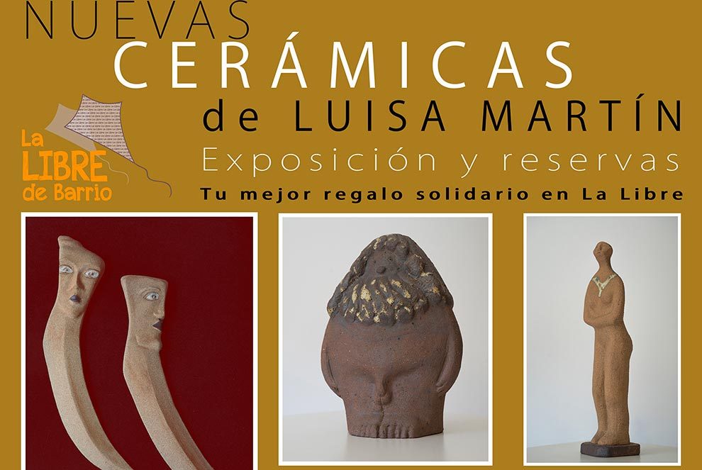 Desde el viernes 22 de junio se podrán visitar, reservar o adquirir para un gran regalo solidario las nuevas piezas cerámicas de Luisa Martín. Obras que tienen un gran valor creativo: vasijas, meninas, pisapapeles, figuras femeninas y otras figuras inspiradas en el arte africano, mosaicos, etc. Una oportunidad para disponer de obra cerámica firmada por la autora, un magnífico regalo a un precio realmente bajo.