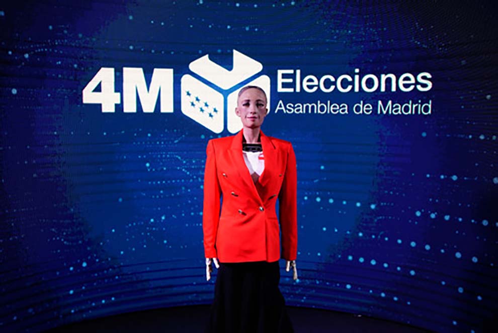 La Comunidad de Madrid va a aplicar la inteligencia artificial por primera vez en un proceso electoral a través del robot Sophia, un software inteligente de aspecto humanoide capaz de ofrecer respuestas a distintos bloques de información. En concreto, esta innovación digital se ha puesto al servicio de los medios de comunicación que seguirán la jornada desde el Centro de Datos del Pabellón 14 de IFEMA y, a través de él, los periodistas podrán conocer en tiempo real los principales datos, magnitudes y novedades que se vayan sucediendo mañana.