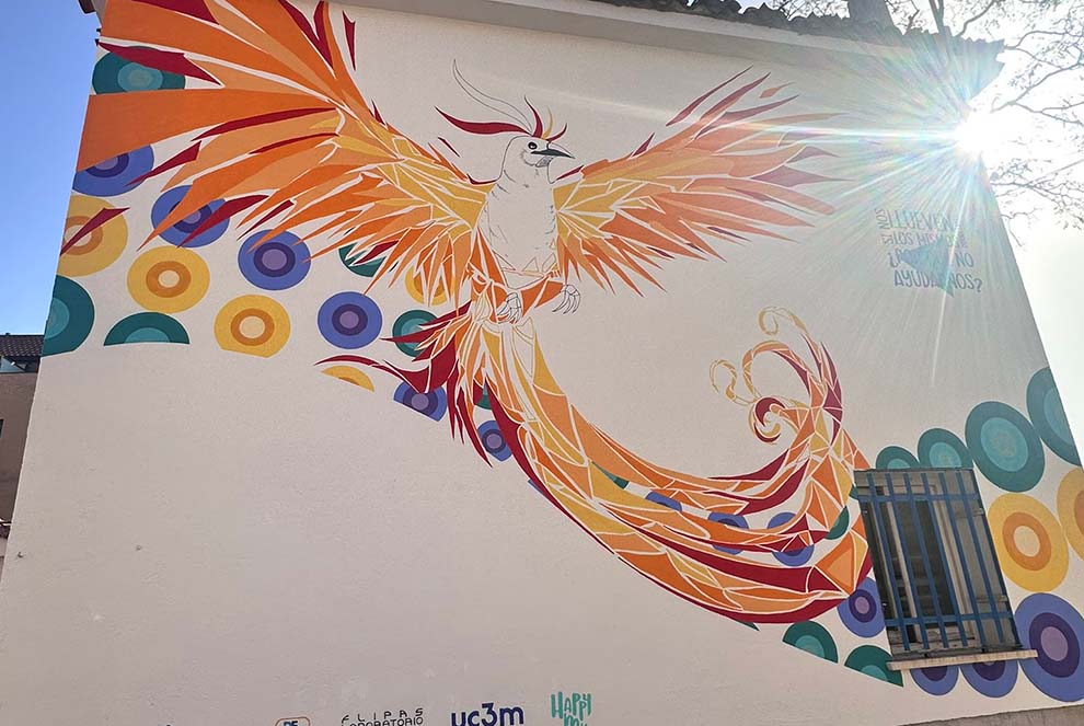11/19/2024 Desde este momento se podrá observar en una de las paredes exteriores del CTA (Centro de Tratamiento de Adicciones de Leganés) el nuevo mural sobre el ave fénix. En la C/ Vicente Alexandre, 16.