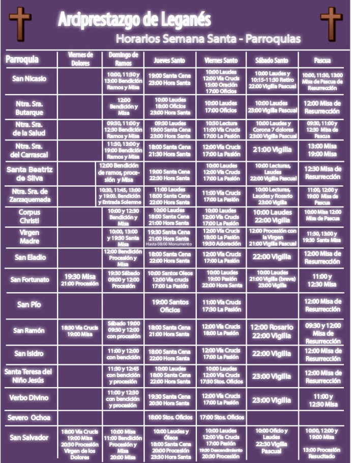 La segunda gran ‘parada’ de la Semana Santa en Leganés llegará el Domingo de Ramos. Una de las fechas tradicionales de estas celebraciones en las que se conmemora la entrada de Jesucristo en Jerusalén. Todas las parroquias de nuestra ciudad llevarán a cabo, según sus propias informaciones remitidas a este periódico, celebraciones especiales para esta mañana de domingo.