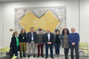 El artista, Pedro Castro Ortega, ha visitado hoy el centro para reencontrarse con su obra y hablar con los alumnos El alcalde de Leganés, Miguel Ángel...