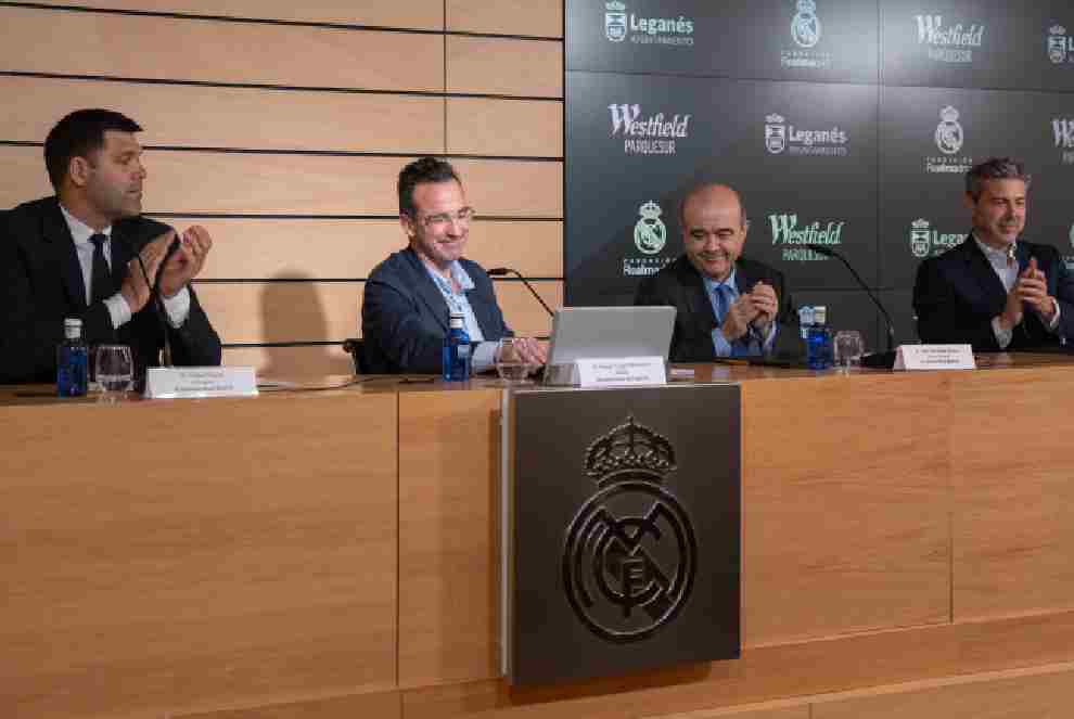 14/04/2026.- El Ayuntamiento de Leganés ha firmado hoy un acuerdo de colaboración con la Fundación Real Madrid y el Centro Comercial Westfield Parquesur para impulsa la Escuela Sociodeportiva de Baloncesto La Fortuna. El acuerdo se ha formalizado hoy en un acto celebrado en la Ciudad Real Madrid con la participación del alcalde de Leganés, Miguel Ángel Recuenco; el presidente de la Fundación Real Madrid, Julio González; el director de Westfield Parquesur, Enrique Bayón; y el embajador de la Fundación Real Madrid, Felipe Reyes.