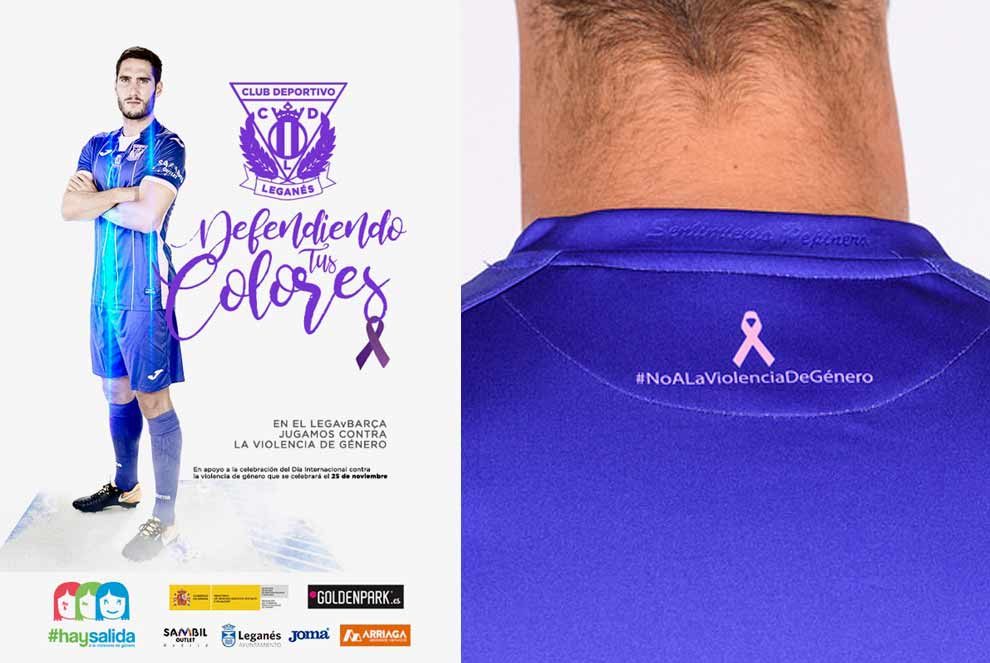 El C.D. Leganés personalizó su segunda equipación en la que predomina el color morado y la serigrafía de un lazo y el hashtag #NoAlaViolenciaDeGénero en la parte trasera de la camiseta. Esta medida de apoyo fue valorada positivamente por la Delegación de Gobierno para la violencia de género. Desde la propia Delegación se pusieron en contacto con el club para establecer un acuerdo de colaboración a través del cual estructurar acciones de concienciación en la sociedad y especialmente en el mundo del fútbol.