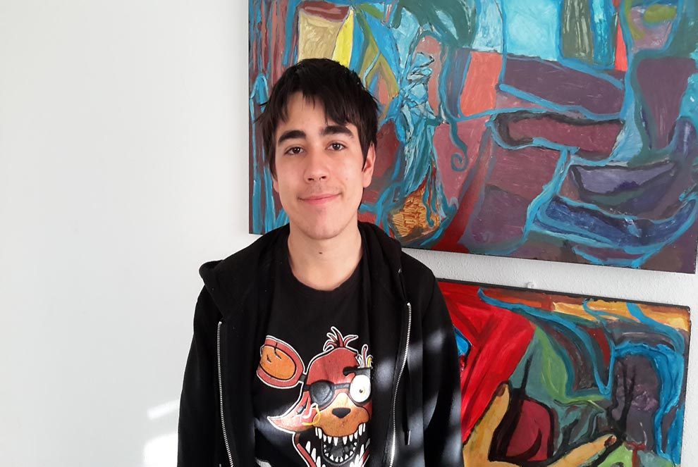 Canales, como habitualmente le conocen sus compañeros, es un adolescente de 20 años al que le cuesta expresarse y plasma con la pintura lo que no puede decir con palabras. Lleva dos años viviendo en Residencia y continúa desarrollando sus habilidades.