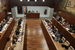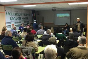 Reunión de los vecinos con representantes de todo el espectro político del salón de Plenos Explicaciones sobre la Biblioteca Central, el armazón del centro...
