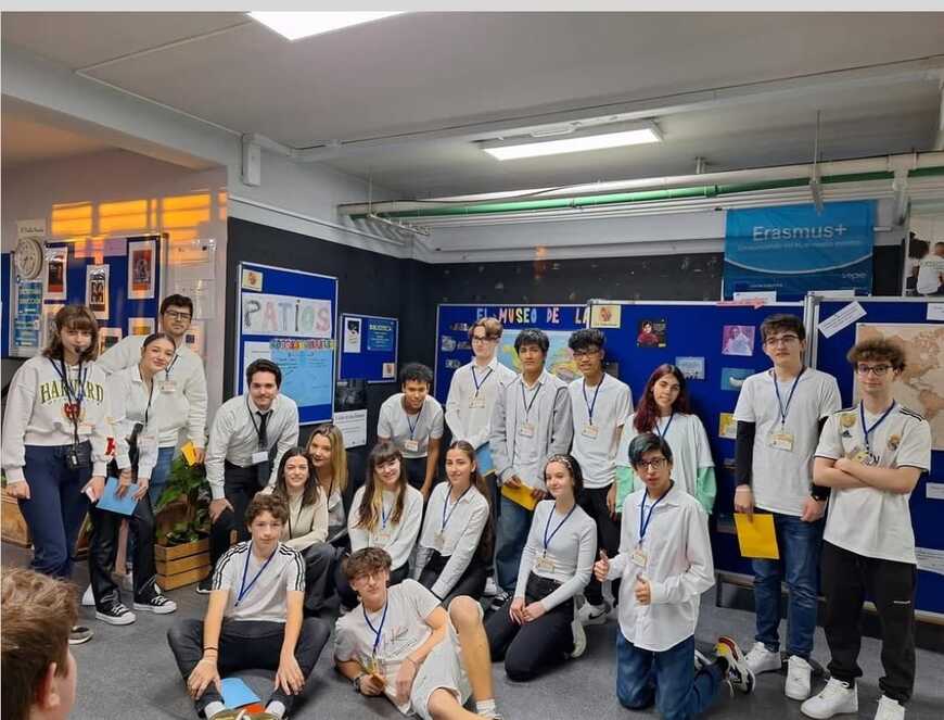 Esta actividad consistía en que los 16 estudiantes que forman esta clase se sumergieron en la investigación de conflictos bélicos del siglo XX y exploraron diversas expresiones artísticas relacionadas con la paz y la guerra, como la música, el anime y la pintura. Después, crearon carteles y montaron una exposición en su instituto, donde asumieron el papel de guías para explicar el contenido a toda la comunidad escolar. Además, decoraron el vestíbulo de entrada del instituto con fotografías, mapas, citas y otros elementos, para así lograr recrear la atmósfera de un verdadero museo.
