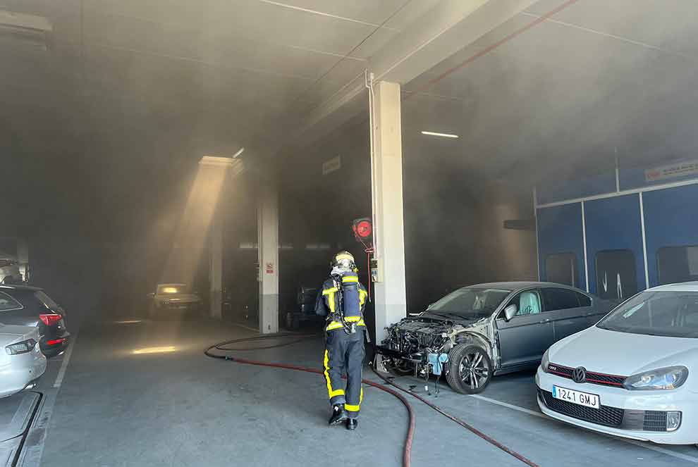Tras el aviso, han sido cinco dotaciones las que han acudido hasta el lugar de los hechos logrando sofocar el fuego y evitando su propagación a cabinas contiguas. Tras la extinción, los bomberos han procedido a la ventilación de la nave. Su rápida actuación ha logrado que solo se haya visto afectado uno de los vehículos que se encontraban en el interior.