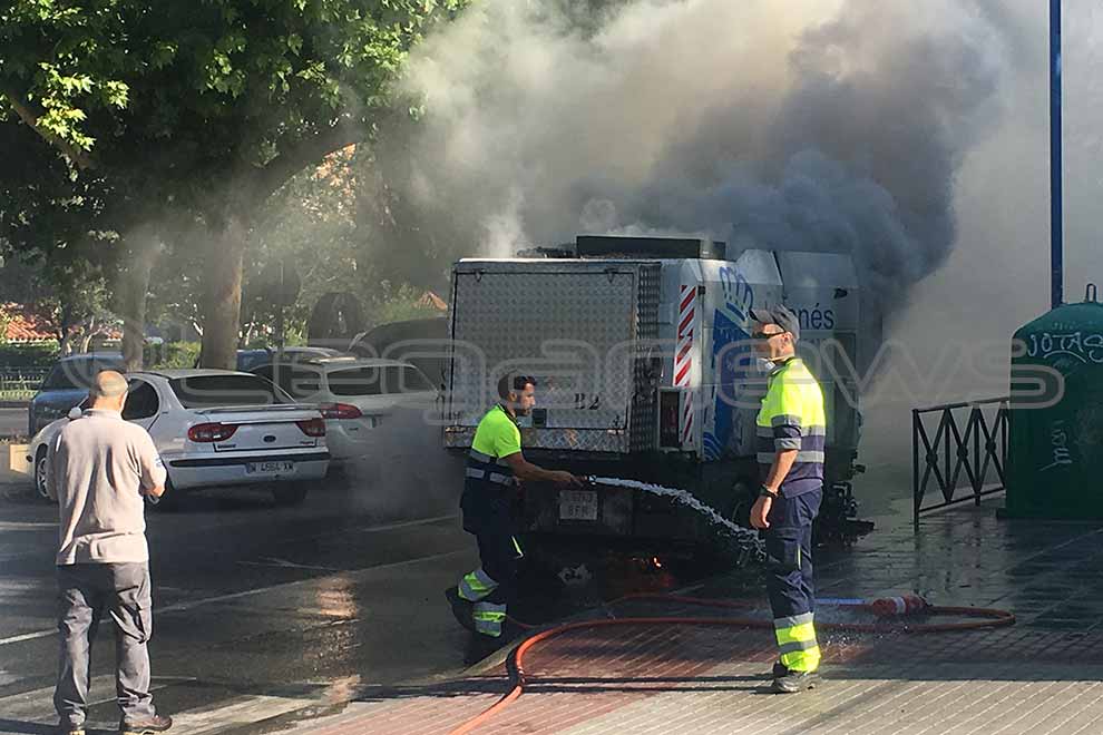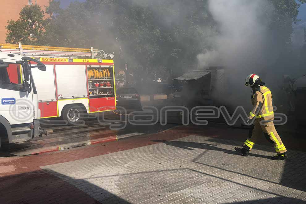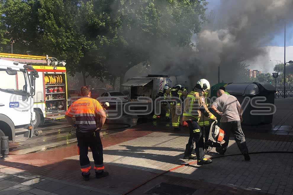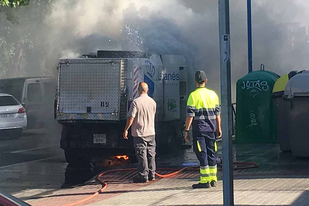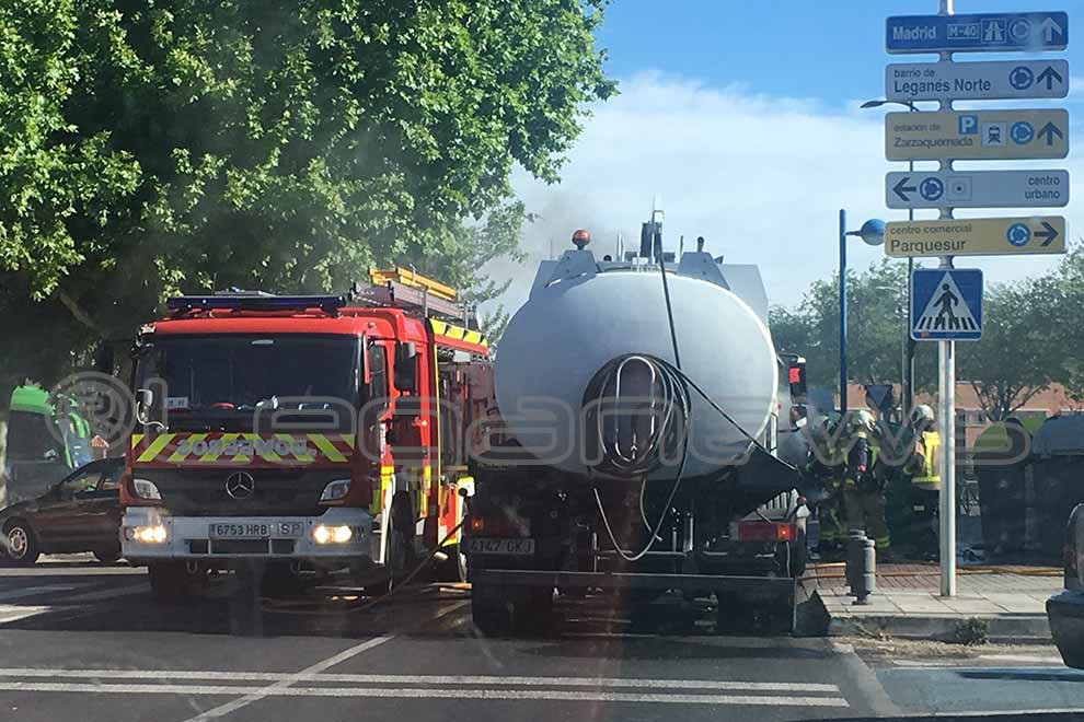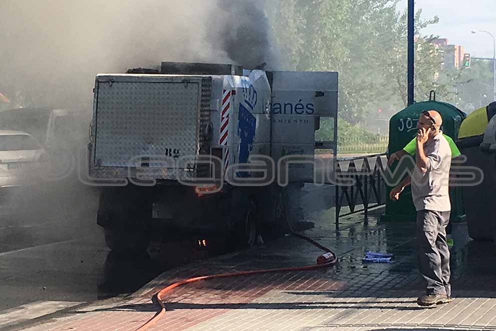 Un vehículo de limpieza viaria de Leganés ha ardido esta misma mañana poco antes de las nueve y media cuando se encontraba realizando las labores propias. El conductor del vehículo, que se encontraba en la Avenida de Europa esquina con la Avda. Rey Juan Carlos I, notó un olor a quemado. Inmediatamente, al notar el olor, se bajó del vehículo y rápidamente encontró asistencia en un camión cisterna de la empresa Valoriza que estaba alli mismo.