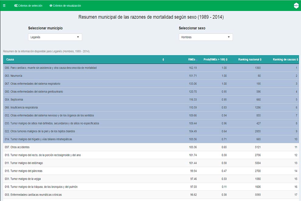 Todos esos datos están incluidos en la investigación llevada a cabo por un grupo de investigadores del Grupo Bayensians de la Fundació per al Foment de la Investigació Sanitària i Biomèdica de la Comunitat Valenciana (Fisabio) y de la Dirección General de Salud Pública y Adicciones de la Generalitat Valenciana ha desarrollado un atlas digital a través del que se puede consultar la mortalidad de España en los 8.116 municipios que existen en el país.