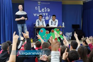 El Club Deportivo Leganés ha comenzado el nuevo año de ‘El Lega vuelve al cole’ en el León Felipe con la visita de Javier Eraso y Óscar Rodríguez. Ambos han acudido a la visita de los niños para promover los valores de la salud y el deporte entre ellos.