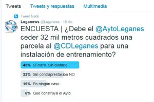 LEGANEWS propone una encuesta en twitter y comentarlo en esta noticia LEGANEWS ofrece a sus lectores la posibilidad de dar su opinión y/o posicionarse sobre la...