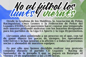 Gradona de los Malditos, Asociación de Peñas Racinguistas, Once Leones y Federación de Peñas de Leganés firman el comunicado En el comunicado piden horarios de...
