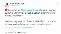 ACTUALIDAD • SALUD Los niños de Madrid cambiarán la hora de salida desde el jueves: 10:00 a 13:00 y 17:00 a 21:00 26/05/2020