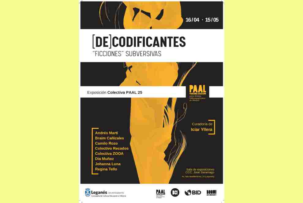 15/04/2026.- Este jueves 16 de abril a las 19:00 horas la sala de exposiciones del Centro Cívico José Saramago de Leganés abrirá sus puertas para inaugurar la exposición “(De)codificantes: ficciones subversivas”. El Ayuntamiento de Leganés, a través de la Concejalía de Cultura, trae al municipio esta muestra colectiva que reúne el trabajo de ocho creadores que conformaron la tercera edición del programa acelerador para artistas latinoamericanos [PAAL], una iniciativa impulsada por Boom! Art Community!