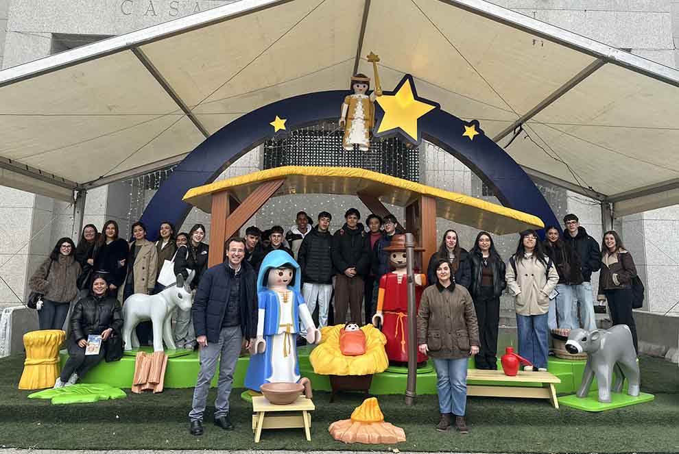 Al acto matinal asistieron también los alumnos del IES Pablo Neruda de ‘Comercio y Marketing’ de Formación Profesional. Los estudiantes pudieron vivir de manera muy especial la inauguración del Belén de Playmobil gigante y de la campaña de comercio. Los actos de mañana y tarde fueron presentados por la popular periodista Isabel Rábago.