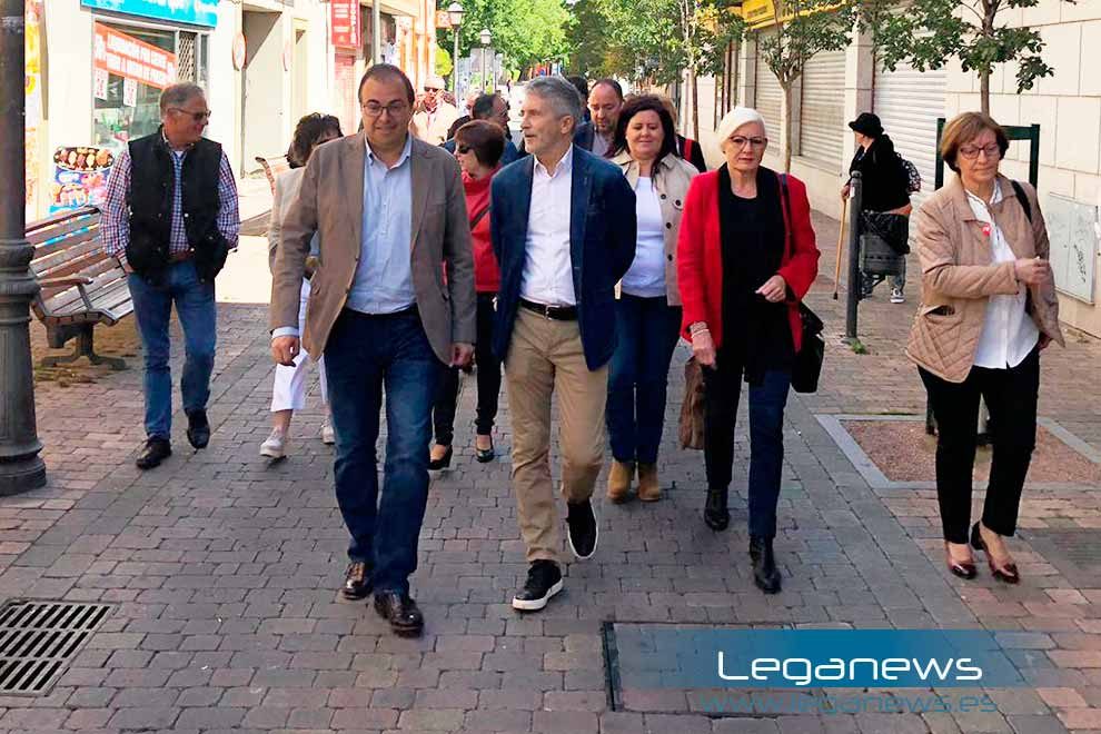 El ministro de Interior, Fernando Grande Marlaska, ha acompañado hoy al candidato del PSOE, Santiago Llorente, por un paseo por el centro de la ciudad. En dicho paseo han estado acompañados por varios miembros de la candidatura de los socialistas para las próximas Elecciones Municipales en Leganés.