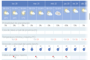 La temperatura máxima de la semana será de 35 grados para la jornada del sábado El lunes hay un probabilidad de un 15% de precipitaciones a partir del mediodía...