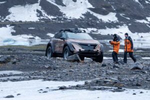 Una pareja británica parte del Polo Norte Magnético, emprendiendo una aventura por primera vez en el mundo en su Nissan Ariya eléctrico Rodeados de un vasto...