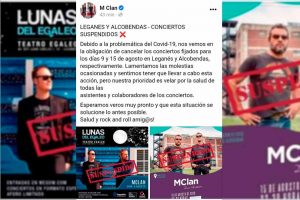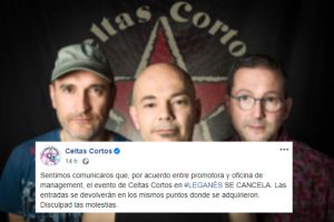 La cancelación ha sido un acuerdo entre la promotora y la oficina de management “Las entradas se devolverán en los mismos puntos donde se adquirieron”. Celtas...