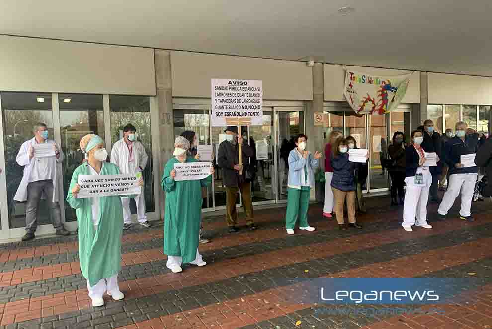 SANIDAD | 📽️ Concentración en la puerta del Hospital Severo Ochoa de #Leganés contra el traslado ‘forzoso’ de sanitarios del refuerzo COVID al hospital Isabel Zendal. pic.twitter.com/IJC1T6E3AM