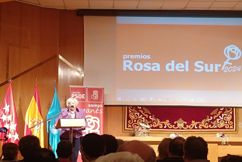 El PSOE de Leganés celebró en la tarde del viernes la entrega de los premios Rosa del Sur 2024. El encargado de acoger el evento fue el Centro Cívico Cultural Las Dehesillas, que se encontraba abierto al público general. Estos premios reconocen a las personas e instituciones que han destacado, por la defensa de la libertad, la igualdad, y la solidaridad. Al evento acudieron los representantes de las asociaciones premiadas, los militantes premiados y por supuesto, la estrella del evento Paquita Sauquillo.