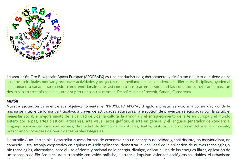 Hay que recordar que, según indican en su propia web, la citada asociación puesta ahora en el punto de mira se define de la siguiente manera: “(sic) no gubernamental y sin ánimo de lucro que tiene entre sus fines principales motivar y promover actividades y proyectos que, mediante el uso consciente de diferentes disciplinas, ayuden al ser humano a sanarse tanto física como emocionalmente, así como a sembrar en la sociedad las condiciones necesarias para un desarrollo en armonía con la naturaleza y entre nosotros mismos”.