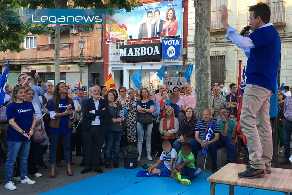 El Partido Popular de Leganés echó el cierre a su campaña electoral para las Municipales en la noche del jueves en la Plaza de España. Su candidato a la alcaldía, Miguel Ángel Recuenco, acabó subido en una mesa porque “quiero ver las caras de todos mis vecinos” y, dado que no había escenario, pidió, saltándose el protocolo, una mesa a la que poder subirse para dirigirse a los asistentes.