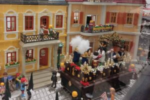 El diorama representa a cuatro cofradías con sus pasos, cruz guía, costaleros, legionarios, banda, penitentes y autoridades La exposición contiene más de 1000...