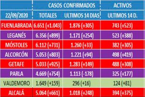 La cifra supone un incremento de 388 casos con respecto al dato de la semana pasada Fuenlabrada sigue a la cabeza de todos los datos La segunda oleada del...