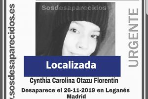 Cynthia Carolina, de nacionalidad paraguaya, desapareció el pasado 26 de noviembre y ya ha sido localizada en buen estado, según ha informado la Guardia Civil...